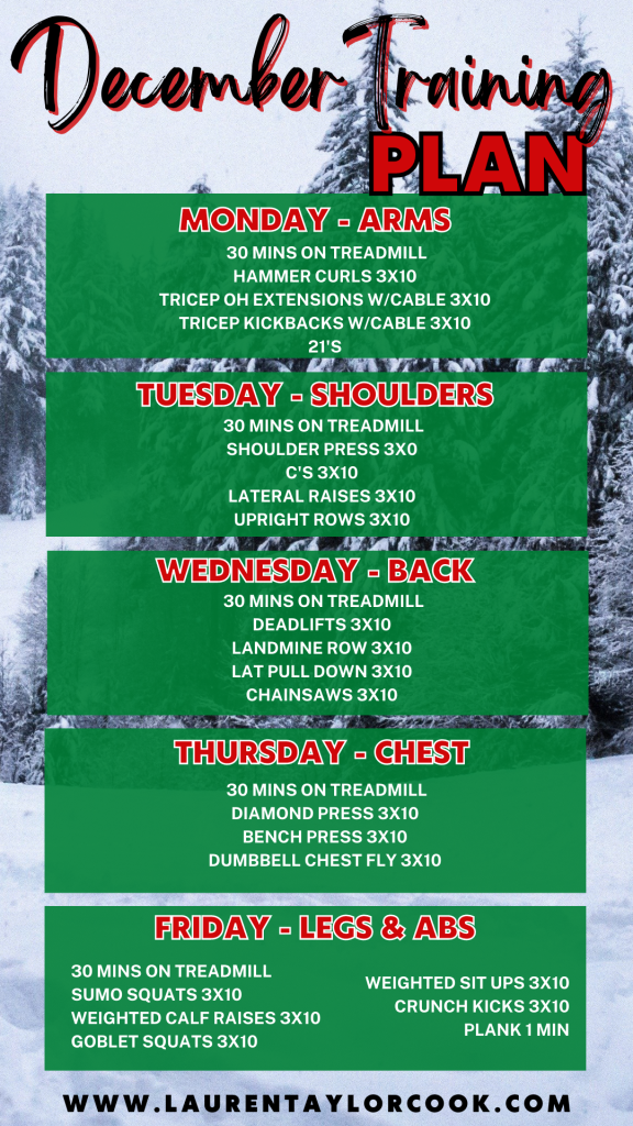 It’s the most wonderful time of the year! Christmas is my absolute favorite holiday, with that comes all of the holiday festivities, so I need to be hitting the gym regularly. This training plan is also going to be short and sweet to get through the holiday season, so I can stay on track for the New Year.